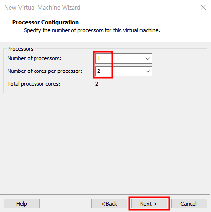 ※ VM 이름 및 저장 위치 설정, Processor 개수 설정