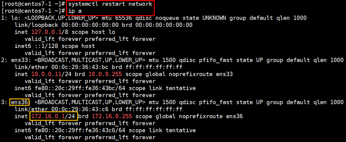 # cp /etc/sysconfig/network-scripts/ifcfg-ens33 /etc/sysconfig/network-scripts/ifcfg-ens36