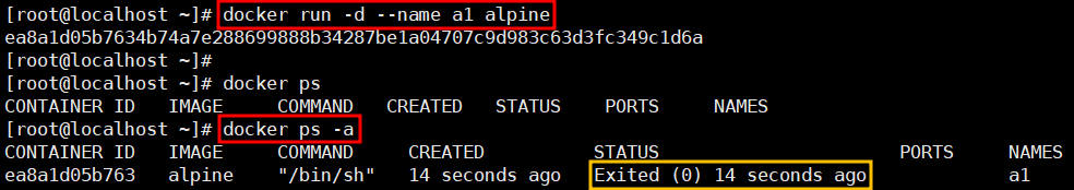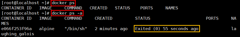 - -a 옵션을 주어 프로세스를 확인해보면 현재 Exited 상태인 것을 확인할 수 있음
