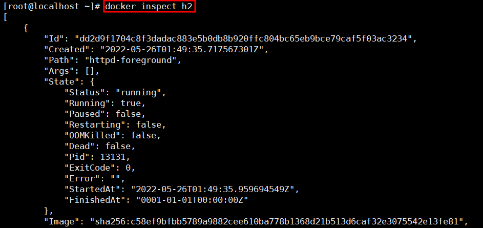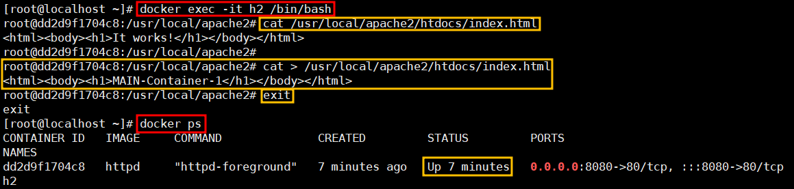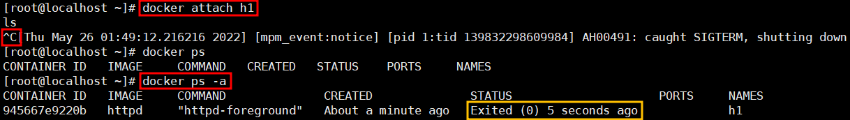 ※ attach로 h1 컨테이너 접속 진행 후 ctrl+c로 빠져나오기