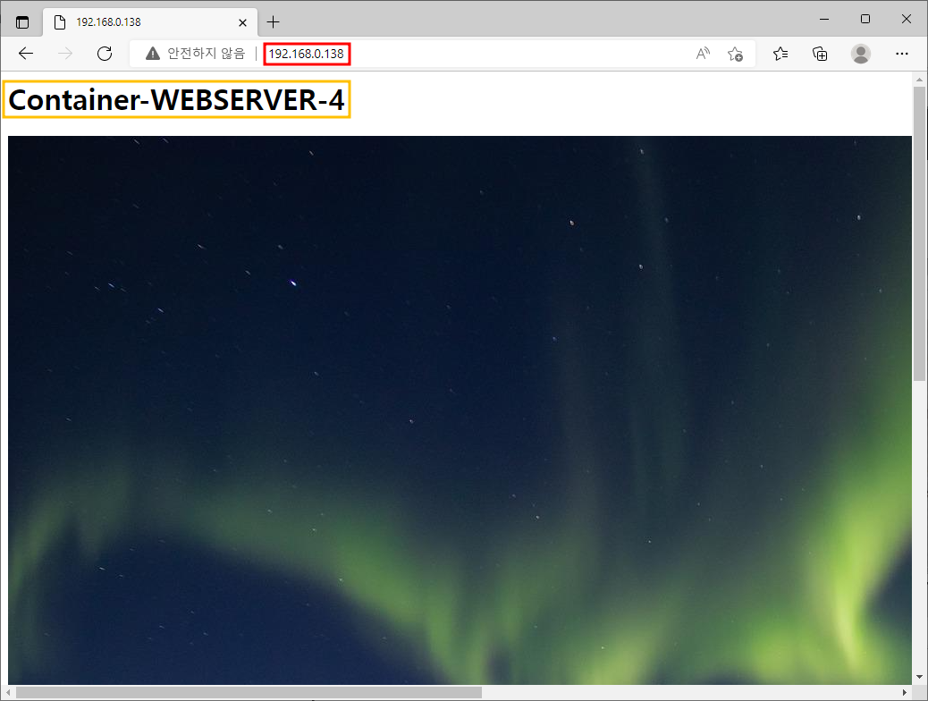 실제 PC 브라우저에서 Docker를 서비스하는 가상머신의 IP를 입력 후 새로고침 시 위 4개의 사이트가 순차적으로 나타나야 합니다.