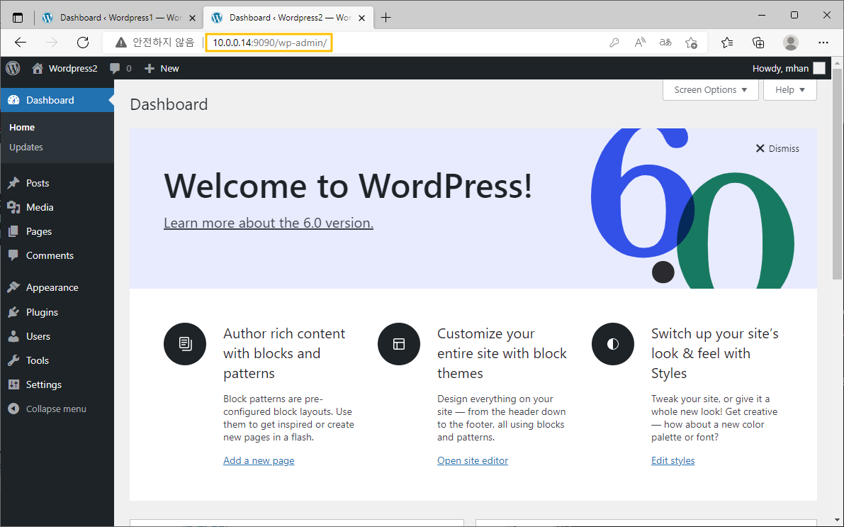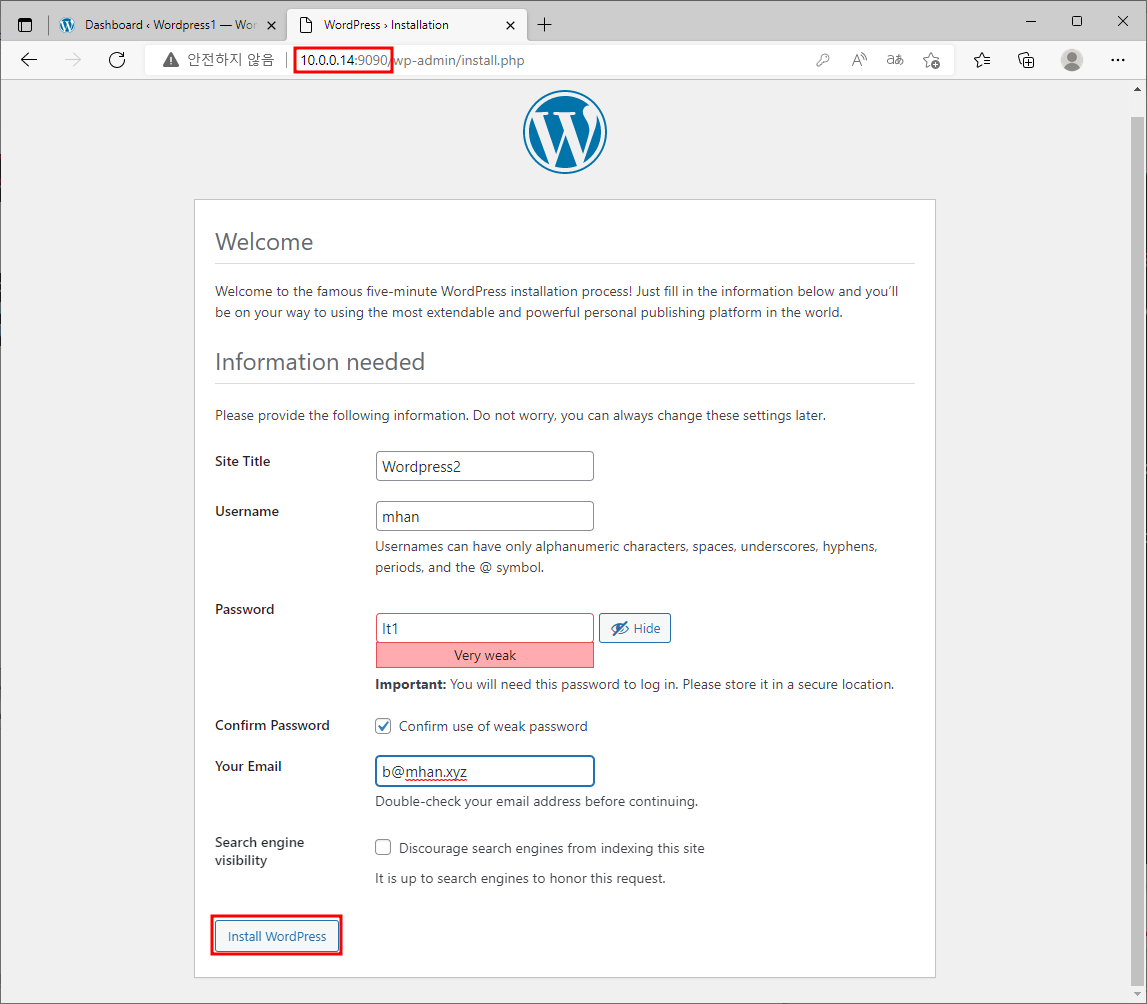 2.3. 웹 브라우저에서 Wordpress 접속