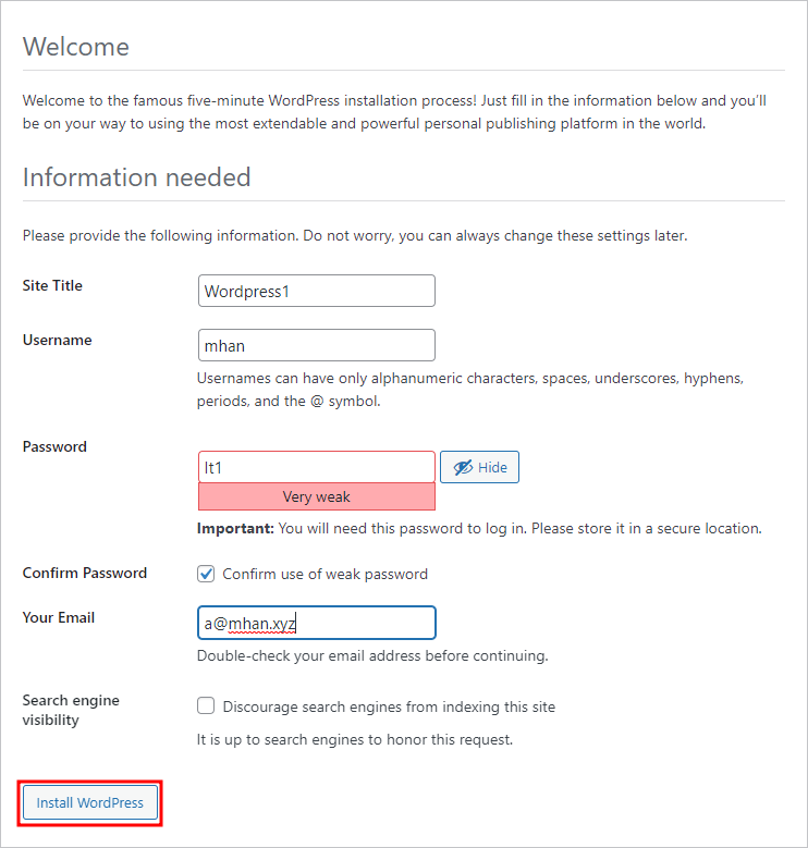 ※ wordpress 생성