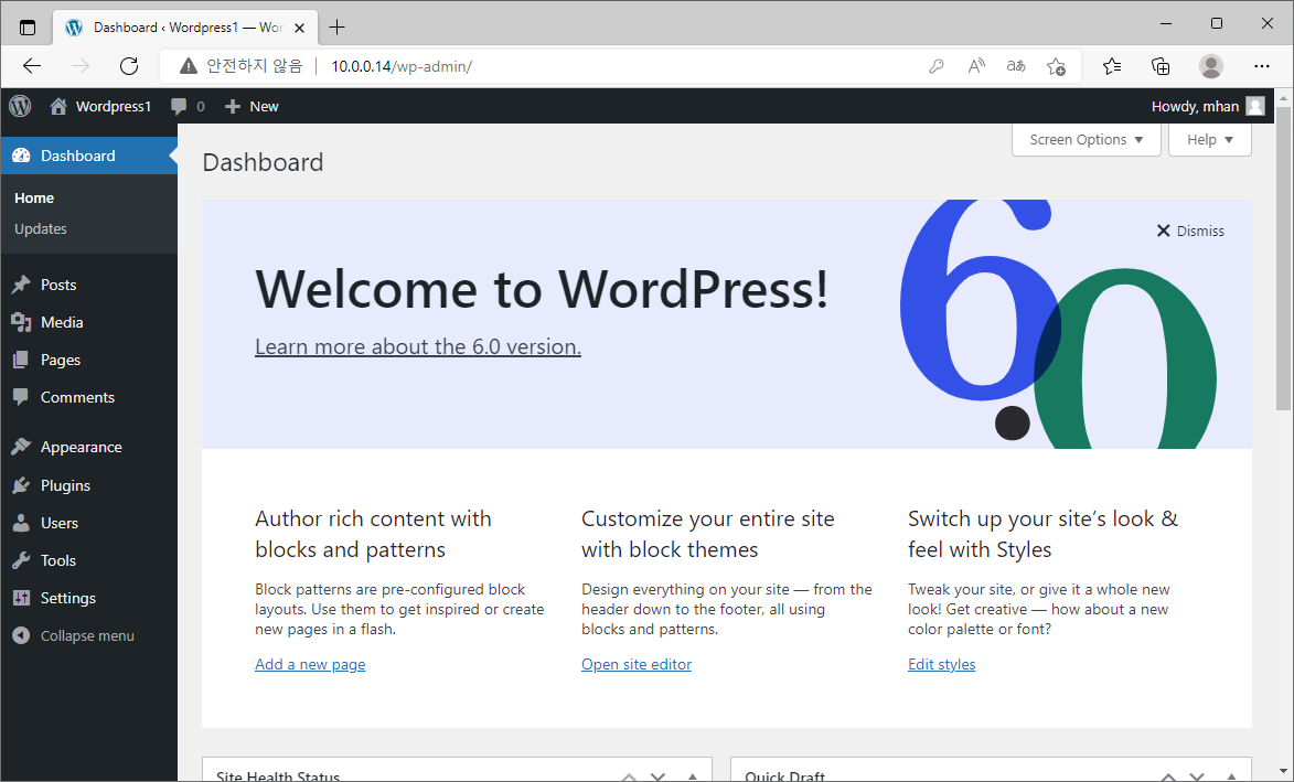 2.2. wordpress 접속테스트