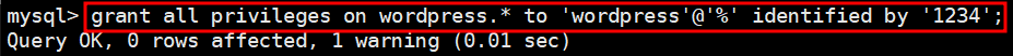 ※ wordpress 사용자에게 wordpress DB 권한 부여