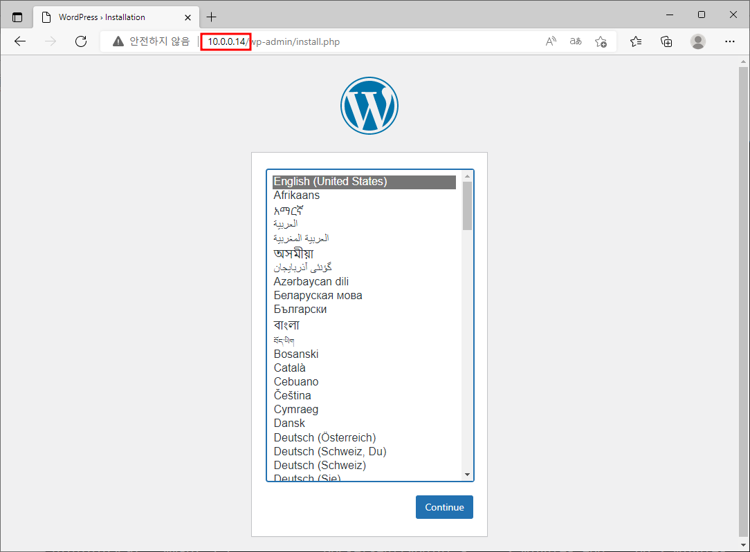 ※ 웹 브라우저에서 IP 입력하여 워드프레스 접속 및 설정