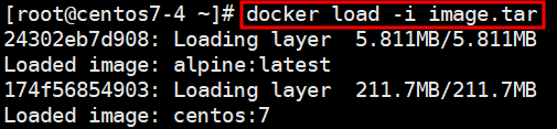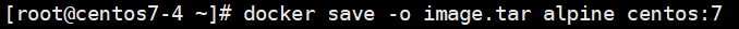 ※ image를 archive 파일로 저장 - alpine, centos:7 이미지를 image.tar라는 아카이브 파일로 저장한다.