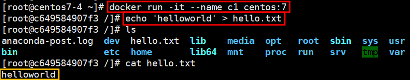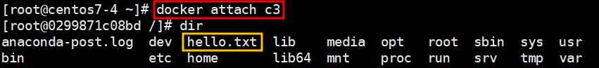 ※ c3 컨테이너 접속 - 위에서 생성한 hello.txt 파일이 있는 것을 확인할 수 있다.