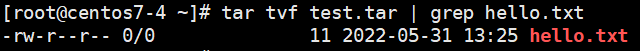 ※ test.tar 아카이브 파일의 hello.txt 파일 확인
